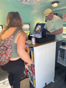 All day, people wandered in and out of my shelves, calling me “awesome,” “adorable,” and even “the cutest bookstore on wheels.” I blushed—well, as much as aluminum can.